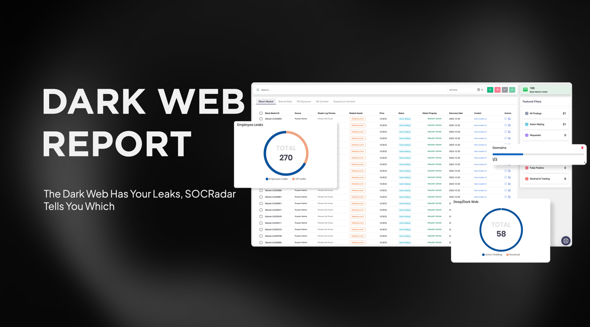 Dapatkan peringatan intelijen yang dapat ditindaklanjuti dengan identifikasi domain phishing instan dan kompromi deteksi kredensial dan kartu kredit.